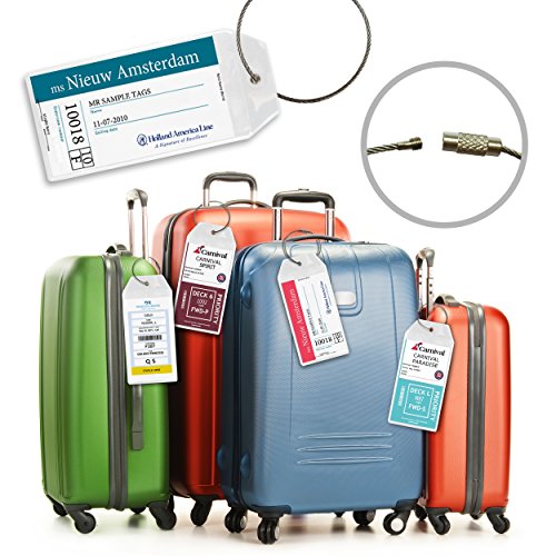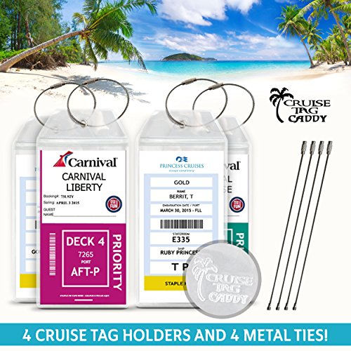- INCLUDES: 4 cruise ship Zip Seal luggage tag holders and 4 braided steel ties. Now your paper tags won't rip off leaving you with lost luggage