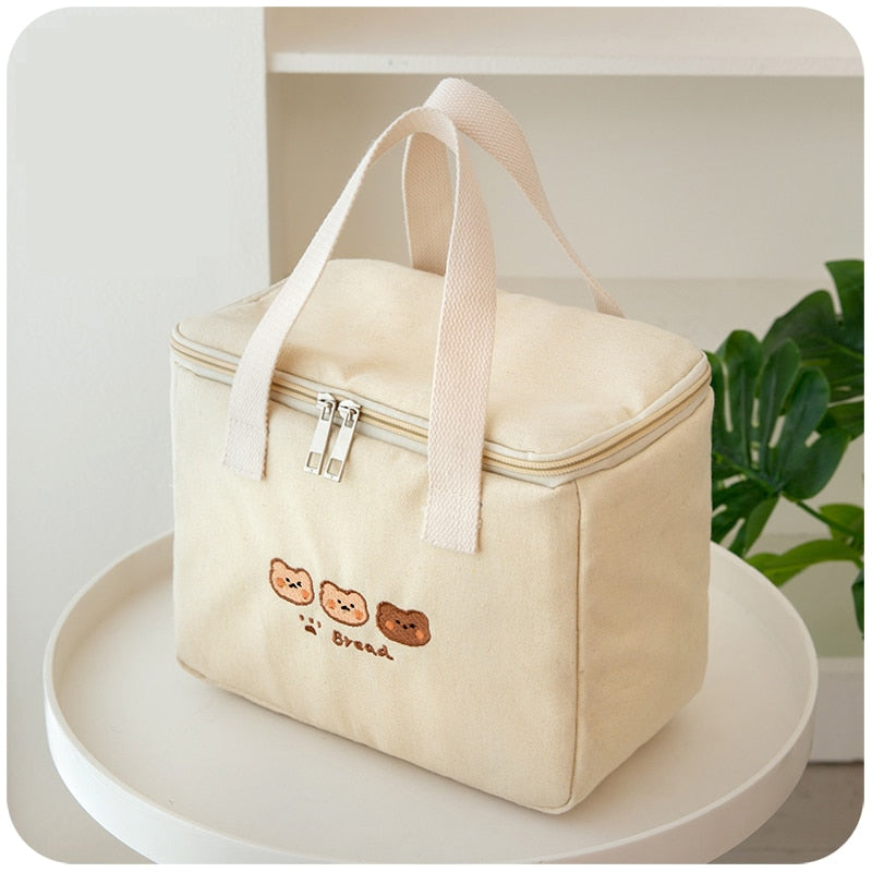 Kawaii Bear Lunch Bags For Women Kids Girl Cute Korean Canvas Insulated Portable Picnic Tote Food Storage Bags For Office Lady