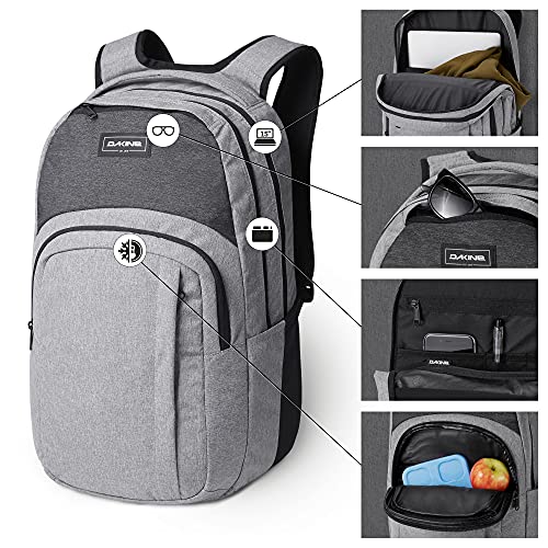 Details: A MID-SIZE BACK-TO-SCHOOL PACK The Dakine's Campus 25-liter pack offers back-to-school utility for mid-size loads. The design follows the lead of the Campus 33-liter backpack and replaces our Prom 25-liter bag. It is packed with features including a large main compartment with a padded laptop sleeve and plenty of room for books and binders. A handy insulated pocket keeps lunch and snacks cool, while a mix of organizer pockets keeps school-day essentials easy to grab. It's available in a wide range of prints and colors to suit your taste. Founded in Hawaii in 1979 and located at the base of Mt. Hood in Hood River, Oregon, Dakine builds backpacks, travel bags, and accessories, outerwear and clothing for people who love to surf, snowboard, skateboard, mountain bike, ski, windsurf, kiteboard and travel. Progress Is In Our DNA We're challenging you to chase the unknown. To push against predictable and break away from comfort - to surf new breaks, ride steeper terrain, go where the wind howls and the trails push past the horizon. To go where you've never gone, do what you've never done and revel in the experience. We'll be right there with you.