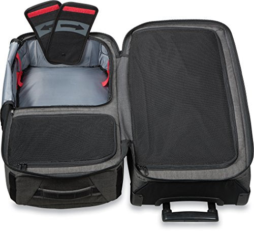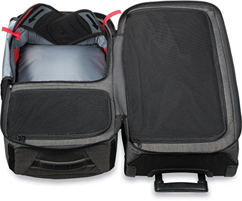 Details: The most celebrated feature of the iconic Dakine split roller 85L travel bag is the divided top and bottom compartments which allows for the ultimate in organization and access. The interior organizational benefits include a large main compartment as well as individual divided sections all SEPARATED with see-through mesh dividers to keep clean separate from dirty, or adventure and sports gear separate from clothing. The ingenious split-wing collapsible brace allows the travel bag to fold flat conserving your valuable storage space when not in use. This stylish rolling luggage is not your father's suitcase. Founded in hawaii in 1979 and located at the base of mt. Hood in hood River, Oregon, Dakine builds backpacks, travel bags, and accessories, outerwear and clothing for people who love to surf, snowboard, skateboard, mountain bike, ski, windsurf, KITEBOARD and travel. Progress is in our DNA we're challenging you to chase the unknown. To push against predictable and break away from comfort - to surf new breaks, ride steeper terrain, go where the wind howls and the trails push past the horizon. To go where you've never GONE, do what you've never done and revel in the experience. We'll be right there with you.