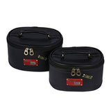 Details: This classic nice ellipse makeup case made of faux leather with patch pattern design on surface. Easy to tote with the single top handle. On the inner side of the lid have slots and wide strap help to keep brushes handy. This organizing and storing suit for all your cosmetic, tools, toiletries, and accessories. Two cosmetic box have same design. Large capacity must satisfy you. Best gift for yourself and friends. Dimension of large box: 23.5*18.5*13cm?9.25*7.28*5.11inches?. Dimension of smaller box: 21.2*16.5*11.5?8.35*6.49*4.52inches?.
