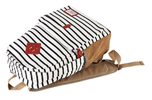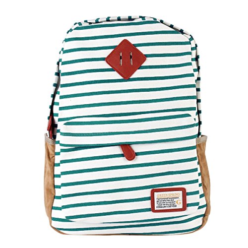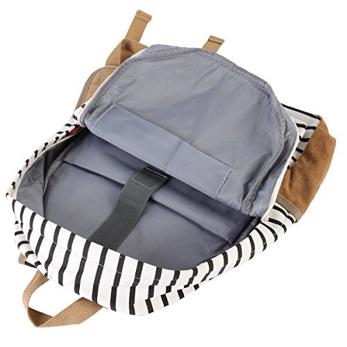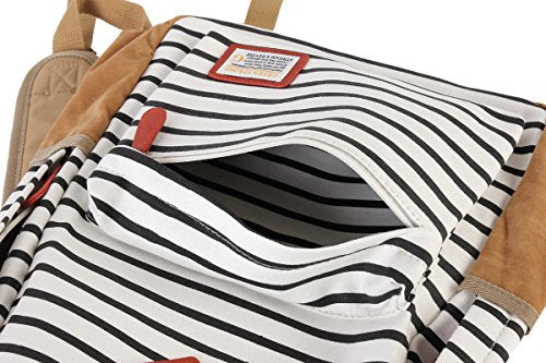 Details: An Euramerican street style backpack that gives you a sense of fashion and youth. The surface is decorated with a square cutout PU. Spliced with soft suede and canvas. Allover stripe print endows the bag a classic feeling. This bag has one small zipper closure to hold things that are usually used, and two side layers to carry headphones or music players outside. Inside is 1 shockproof layer with velcro fastened to save your computer or ipad, 1 large layer to carry books or files. There are two soft shoulder straps that can reduce the stress of your shoulder. Main layer can be opened with two zippers in two directions. This backpack is multifunctional that can also been used as a travelling bag or school bag. Measurement details in: length 43cm (17.01 inches); width 32.5cm (12.8 inches); height 8cm (3.1 inches).