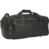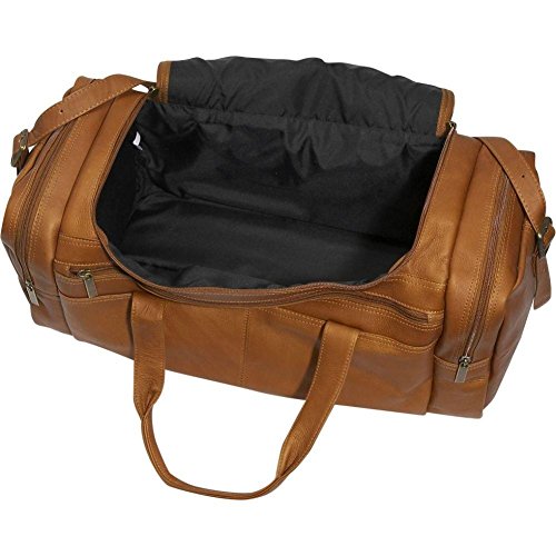 Details: A classic duffel with a large main compartment and two end pockets. You access the main packing area through a large U-shaped zippered opening. The top zippers on the end pockets open wide for easy access. A long zippered pocket on the front is perfect for travel documents. The leather top handles have a comfortable leather wrap. Removable, adjustable shoulder strap. Our soft, rich vacquetta leather displays all the character provided by nature, making each piece unique. Our tanning process locks in natural oils, producing a soft, durable hand that won't crack or become brittle with normal use. Occasional maintenence with a high-quality conditioner is recommended for lasting performance. FEATURES Large main packing section "U"-shaped main zipper Pockets on both ends Leather wrap handles Ajustable and removable strap Dimensions: 19" x 10.5" x 10.5" Weight: 4 lbs. Colors: Black, Tan, Cafe
