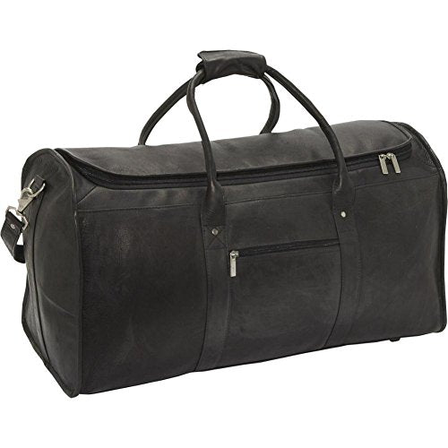 Details: A simple bag for casual travel on weekends or vacation. Large main section with U-zip access. A front zippered pocket for travel documents and an interior zippered pocket for personal items. Top handles include a comfortable leather wrap and there's a removable shoulder strap included. Our soft, rich vacquetta leather displays all the character provided by nature, making each piece unique. Our tanning process locks in natural oils, producing a soft, durable hand that won't crack or become brittle with normal use. Occasional maintenence with a high-quality conditioner is recommended for lasting performance. FEATURES "U"-shaped zip openingFront zippered pocketLeather handle wrap for comfortAdjustable and removable strapDimensions: 25" x 10" x 14"Weight: 7 lbs.Colors: Black, Tan, Cafe