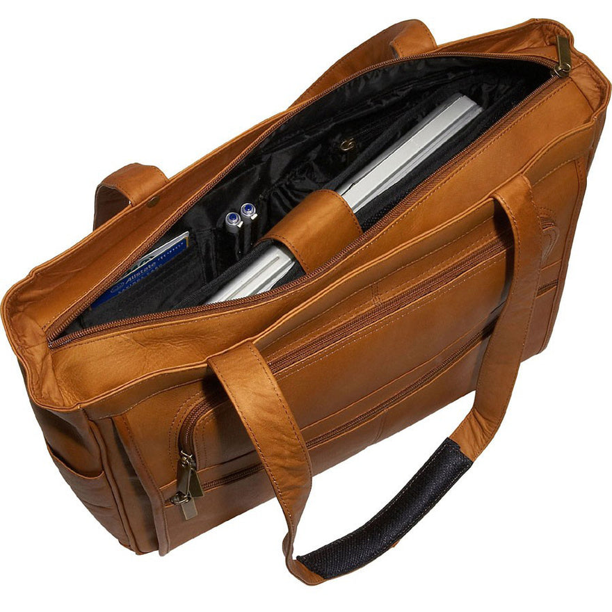 An excellent leather brief designed for women with two front zip pockets, one of them with 3 inside pockets. On the two sides there are open pockets, and a back zip pocket. Inside the case the organizer with card slots, and inside zip pocket with a removable laptop sleeve and 9.5inch drop handles.