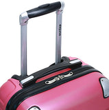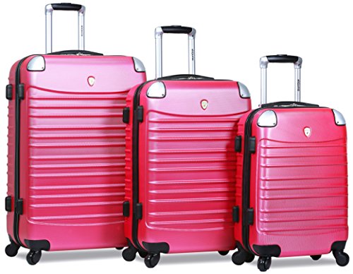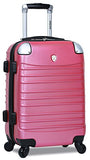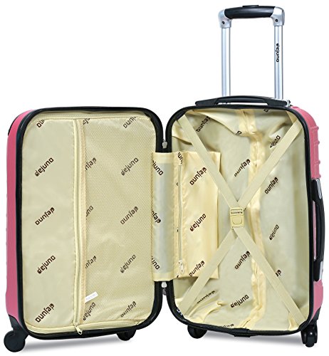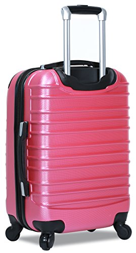 - Durable ABS shell construction, front corner protectors, spinner wheels and push-button telescopic handle
