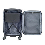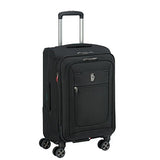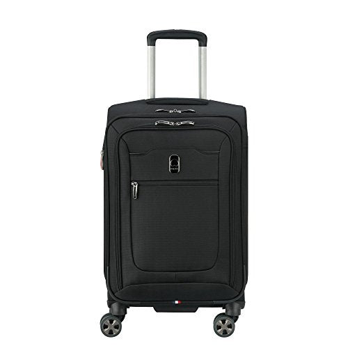 Details: Designed with a durable and lightweight design, this spinner carry-on has all the features without all the weight. Featuring our Delsey dual-density, silent-core double spinner wheels, for smooth and eary maneuvering and a quiet ride. The exterior offers two front pockets for organization, an ergonomic trolley handle with soft-touch grip and rubber corner protectors to shield your case from normal wear and tear. This piece also includes a BONUS, removable tri-fold organizer with two zippered pockets and one zippered wet pouch. The interior also features a large mesh zippered pocket, a side pocket and tie-down straps so all of your belongings are secured and ready to travel.