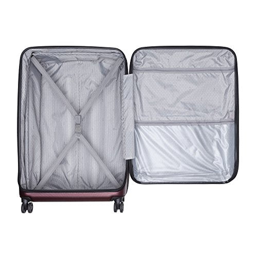 Details: Cruise Hard by Delsey is designed for the consumer looking for the convenience of soft side packing with the durability of a hard side case. This 29 inch Spinner check in bag is made from 100% polycarbonate, a highly impact-resistant plastic that is both strong and lightweight with a scratch-resistant finish. The exterior features double spinner wheels, a rubberized TPR non slip grip trolley handle, interlocking sliders to secure contents of main compartment with a lock, a recessed TSA accepted lock and a 2 inch expandable exterior. The interior of this case features a mesh pocket and zippered pocket in the lid and tie down straps to keep clothing from shifting. Case expands up to 2" for maximum capacity. Worldwide Limited 10 Year Warranty.