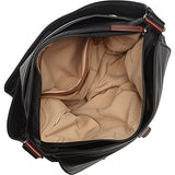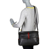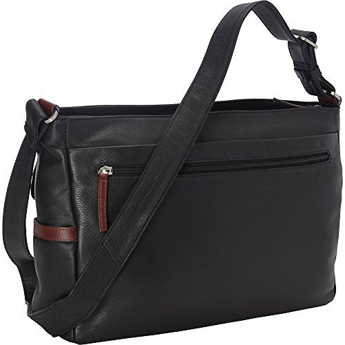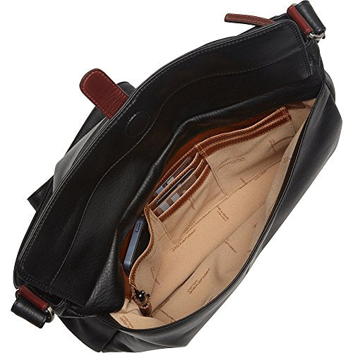Details: The first compartment secured with a hidden magnet is great for storing items that require easy access. The main compartment secured with a top zip provides a back wall zippered pocket, a removable key ring and plenty of space to accommodate all daily necessities. There is a pocket secured with a flap on the front exterior that contains a pen sleeve, a cell phone pocket, three card sleeves and two sleeve pockets. There is a pocket lined with nylon fabric that is secured with a hidden magnet for safely storing a tablet. There is zippered pocket located on the rear exterior for additional storage. The strap is fully adjustable for a comfortable fit cross body or on the shoulder.