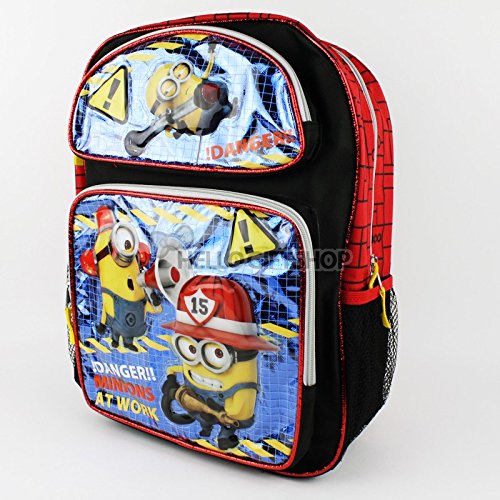 Details: Despicable Me Minions at Work Glitter Boys and Girls School Backpack with Lunch Bag Set 16 Inches Large Backpack: 2 Large zip closure pockets and 2 side Pockets. Size Approx. L 16" x W 13" x D 5" - 464 mm (L) x 348 mm (W) x 127 mm(D) Despicable Me Minions at Work Glitter Boys and Girls School Lunch Bag Insulated Inside for Better Temperature Keeping. Size Approx. L 10" x W 8" x D 4" (L 25cm x W 20.32cm x D 10.16cm) Original Despicable Me Minions Authentic licensed product.