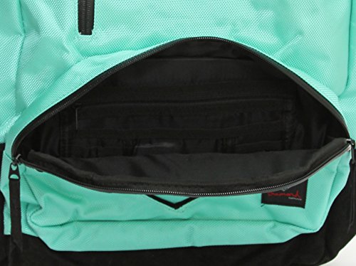 Details: The Diamond Supply School Life backpack has room for more than just books and pencils, but is a good bag for going to work, cruising the streets, or for somebody who is on the move. Side entrance rear padded laptop sleeve with fuzzy material. Large main zippered pocket compartment with dividers . Front pocket with organizational zone. Front vertical zipper pocket. Durable sueded bottom. Diamond patch at front. Padded back support and shoulder straps. 100% polyester. . Approx dimensions: 19" H x 12" W x 5.5" D