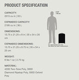 - Central Lock Point with Secure Zip Toggles for pickpocket protection.2015 cu in 33 L