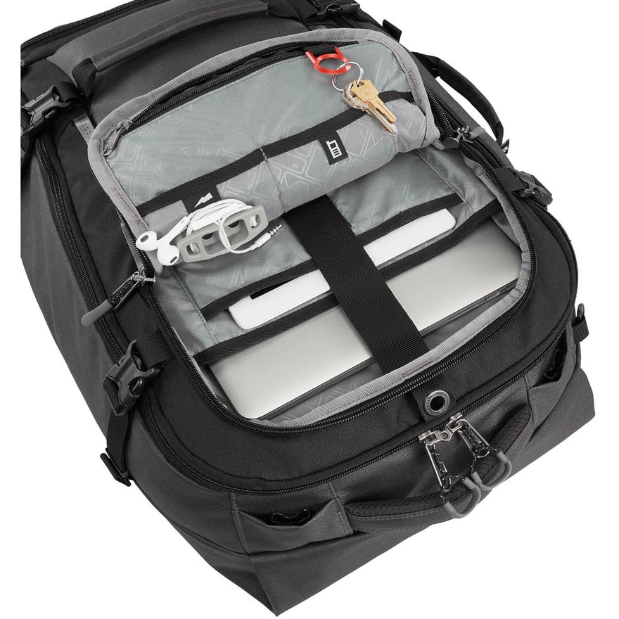 - Secure gear with compression straps and external lash points