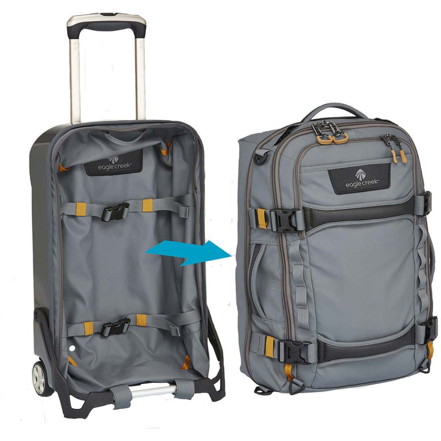 - Multiple carry options include zip-away backpack straps, removable padded shoulder strap, and multiple grab handles