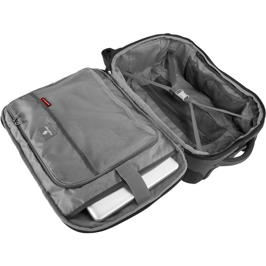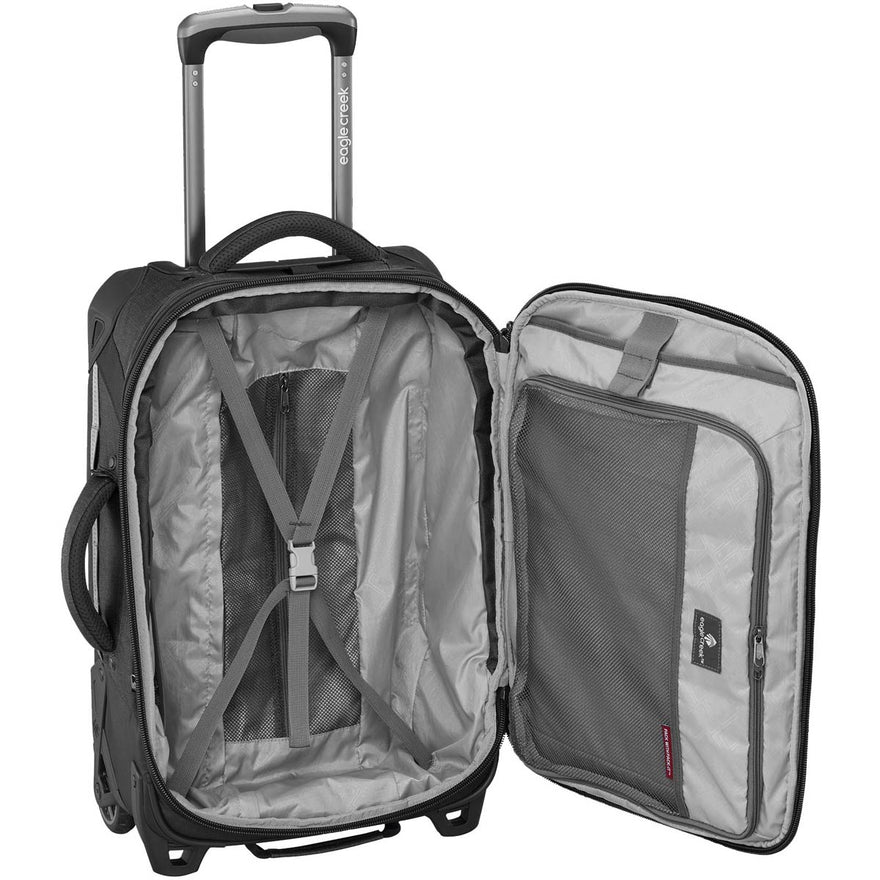 - Over-sized treaded wheels, heavy-duty wheel housings, skid plate, and bumper protection give the carry-on a smooth system to roll on