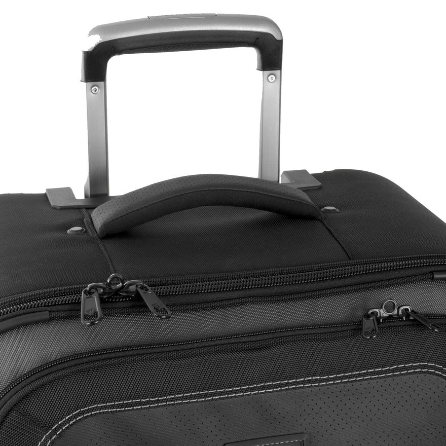 - Ultra-rugged wheels, sturdy wheel housing, bumper protection, and durable travel-tested handle system