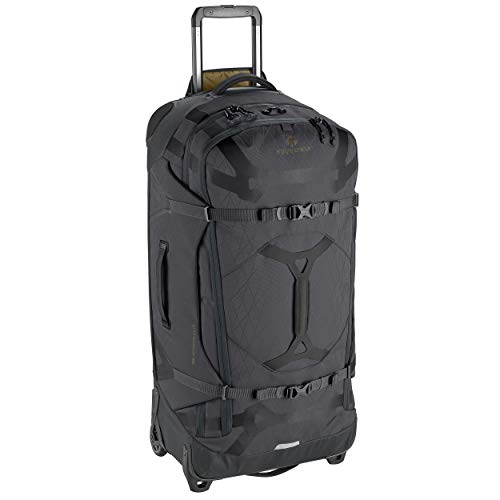 Details: Eagle Creek Gear Warrior Rolling Duffel Bag. This luggage offers ample room with 110 liters of packing space and organized storage. Featuring water resistant material, versatile carrying straps and the option to transport on two wheels, this duffel is ready to help you explore the world.