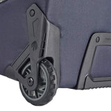 - DURABLE TRAVEL. This duffel allows you to conquer any surface with oversized treaded wheels. Two rolling spinner wheels help provide great grip and traction from the airport to the street, and the street to gravel so you're luggage doesn't slow you down.