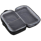 - Book style opening reveals split zippered packing compartments, one with an additional mesh pocket for organization