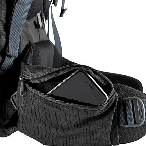 - Ergonomically shaped for maximum comfort with padded, moisture-wicking shoulder straps, back panel and hip belt with external pocket