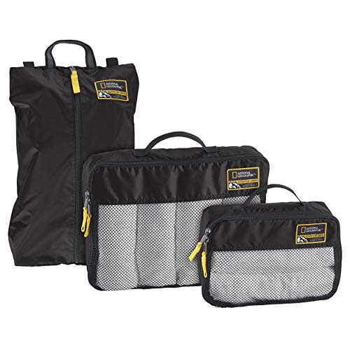Details: Eagle Creek National Geographic Essentials Packing Set. Our National Geographic Essentials Packing set contains three bags that keep your belongings organized and compact. Each bag offers maximum compression, top grab handles, and a mesh front for easy visibility.