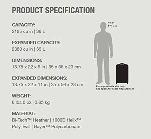 - EXTRA COMPRESSION. This rolling carry-on has a capacity of 36 liters so you can fit everything you need. The expansion zipper increases the main compartment by 15% so you can pack and reach your clothes with ease. Then simply close the zipper when you're ready to travel to compact your suitcase to original size.
