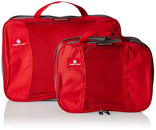 - "I use these to travel at any time for a long weekend up to two weeks abroad. I only ever take my carry on and these are ideal. I have put up to 7 pairs of pants in the larger one. It does compact your clothes. The only downside is it isn't as easy to compress as the video shows, but they still do a pretty good job and keep everything organized along with my small envelope. I definitely recommend eagle creek products. I have pretty much switched all of my luggage to them. I have used other brands in the past, but for the price eagle creek can't be beat." - Karen
