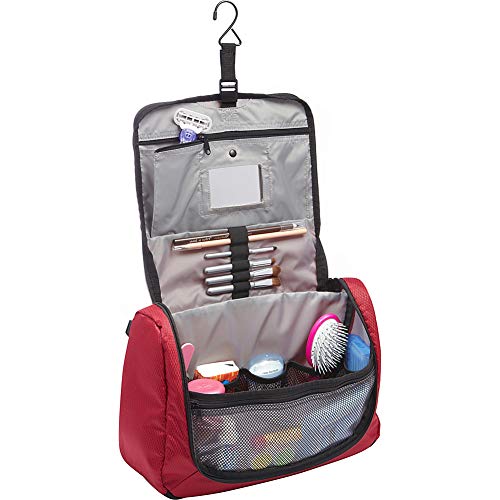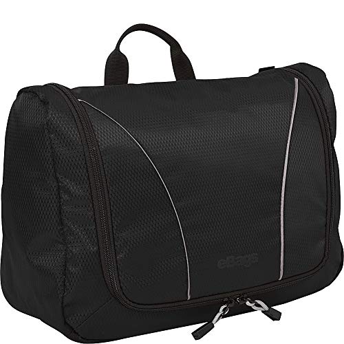 Details: Pack all of your shaving essentials, bath supplies, and beauty products in style inside this large toiletry kit from eBags. The eBags Portage Toiletry Kit - Large is made from TechLite diamond nylon fabric and features a well-constructed design that can stand upright on a countertop. Perfect for long trips or travelers who like to pack full size bottles, this toiletry kit features a large U-shaped opening and a silver lining that makes it easy to locate items inside. The interior includes six elastic mesh pockets to hold bottles in place, elastic loops to hold brushes, razors, and slim items, and a removable mirror for added convenience.
