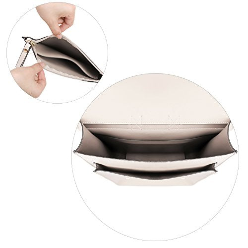 Two divided compartments hold your phone, business cards, lipstick, keys, pens, cables or small makeup.