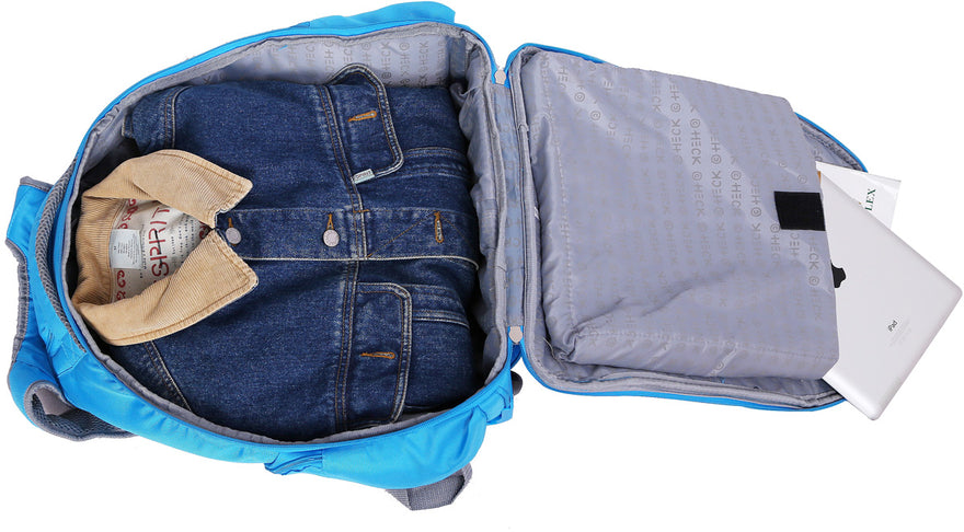 - Ed Heck backpack flaunts his unique pop art and features telescoping handle, skate wheels and concealed shoulder strap.