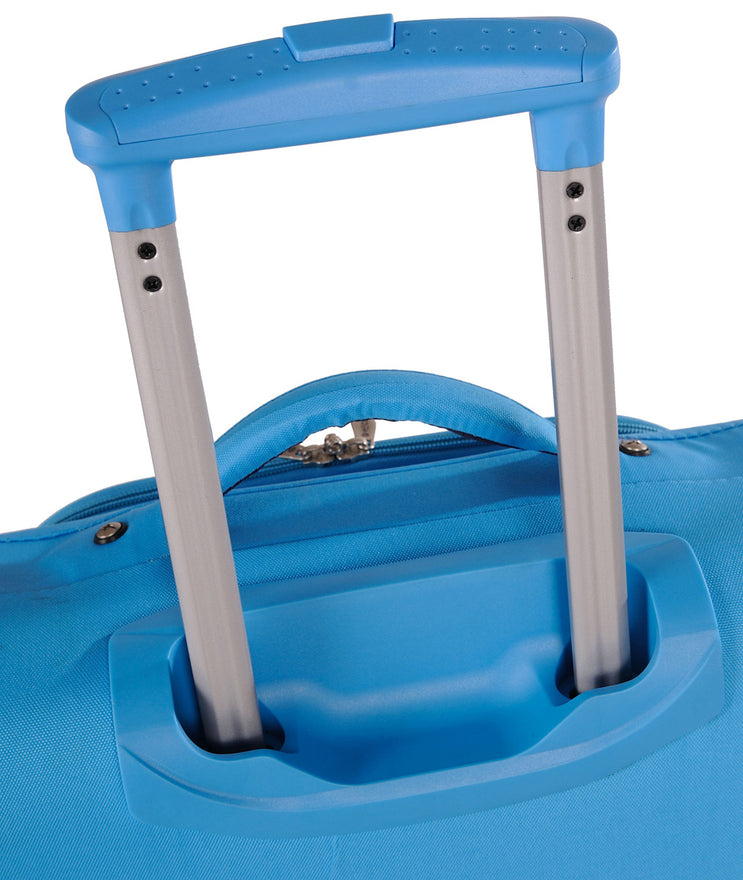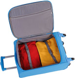 - Ed Heck luggage flaunts his unique pop art and features telescoping handle, spinner wheels and matching hardware colors