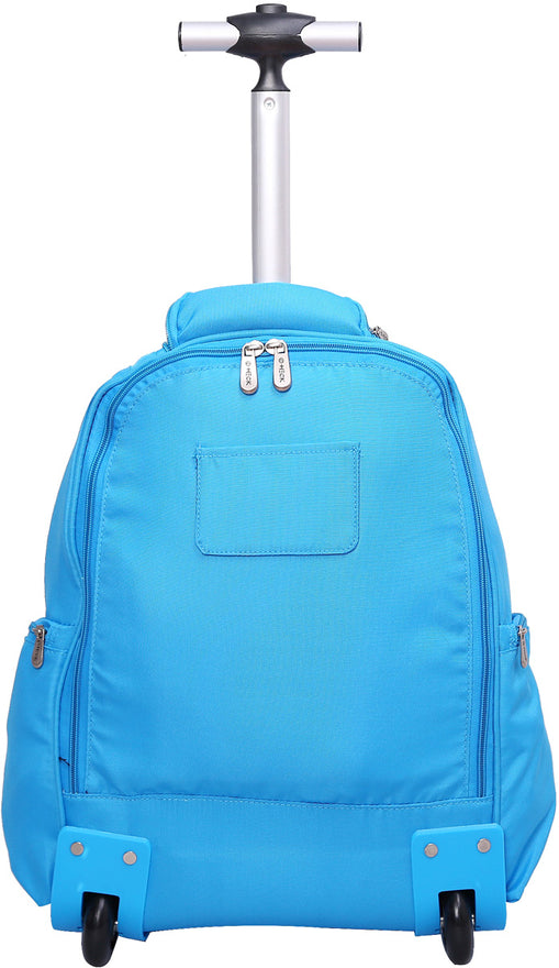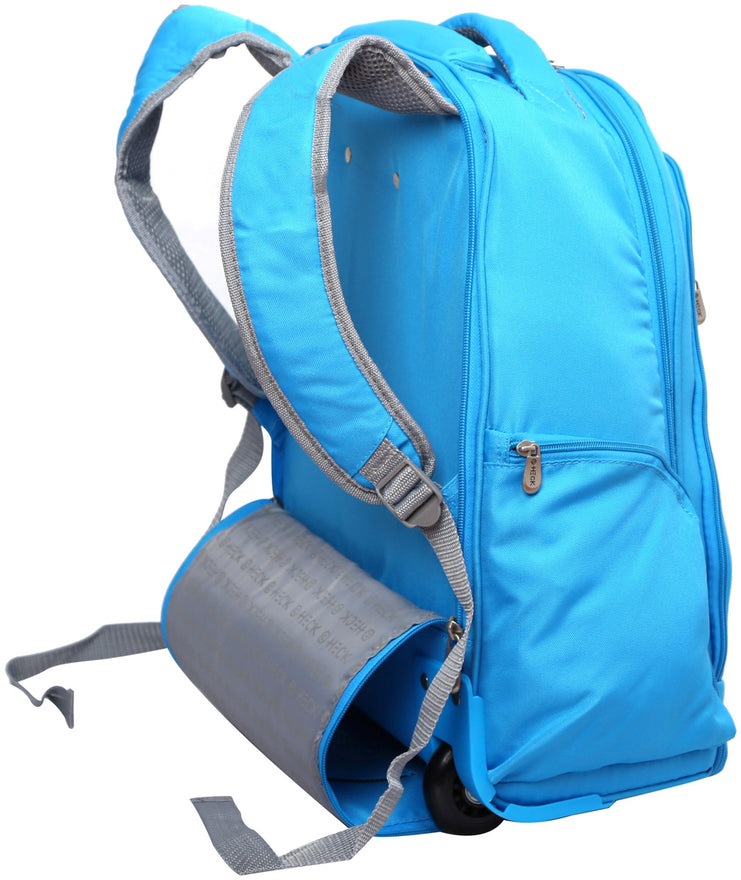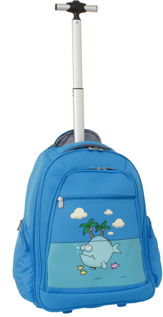- Ed Heck backpack flaunts his unique pop art and features telescoping handle, skate wheels and concealed shoulder strap.