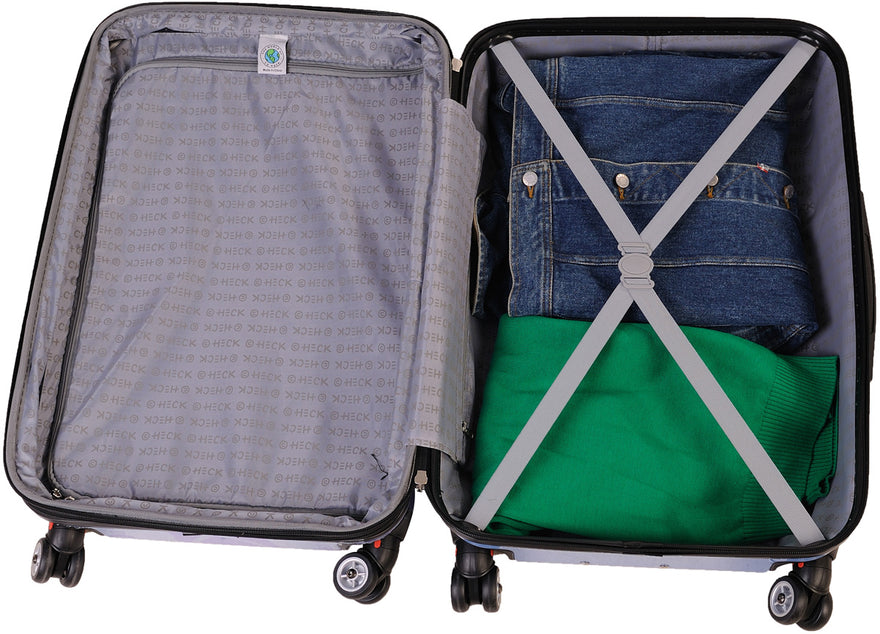 - Ed Heck hardside luggage flaunts his unique pop art and features spinner wheels, dual compartment and expandability
