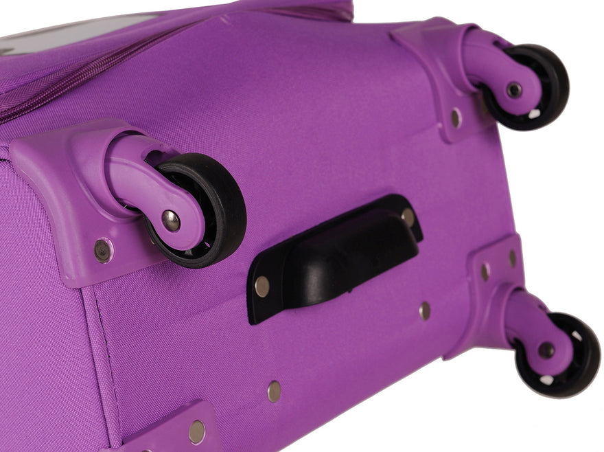 - Ed Heck luggage flaunts his unique pop art and features telescoping handle, spinner wheels and matching hardware colors