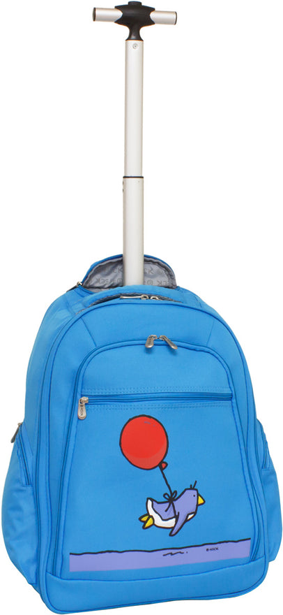- Ed Heck backpack flaunts his unique pop art and features telescoping handle, skate wheels and concealed shoulder strap.