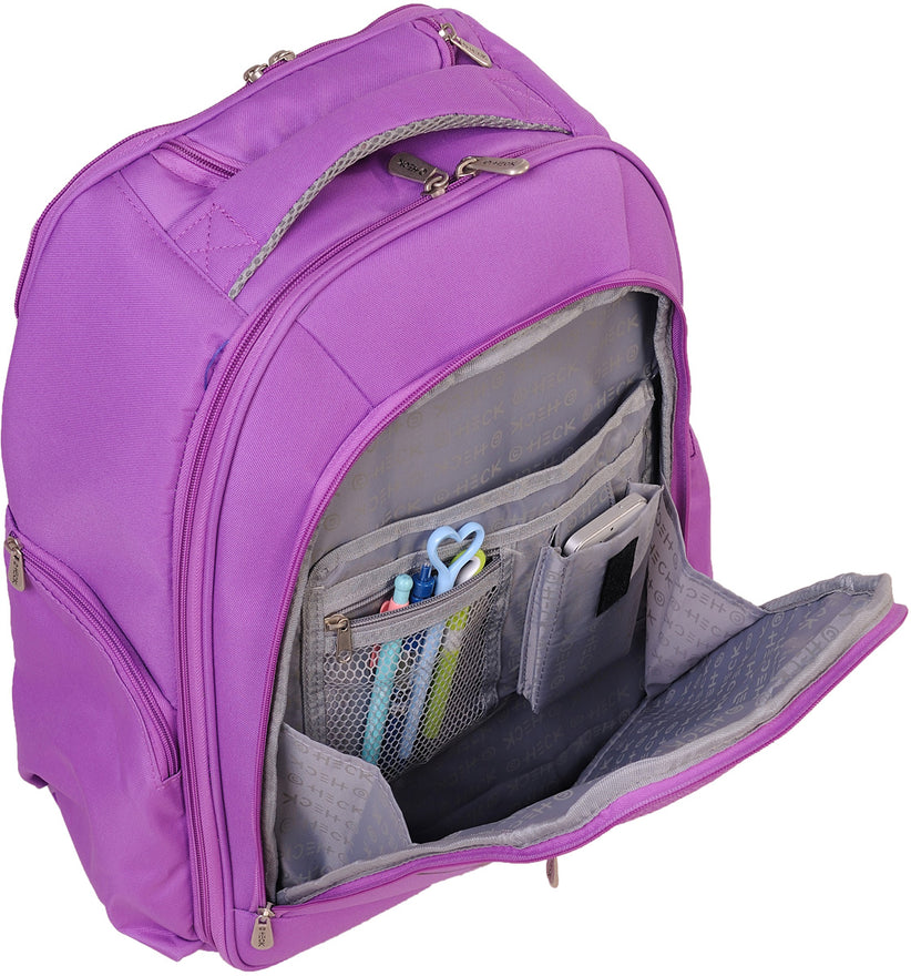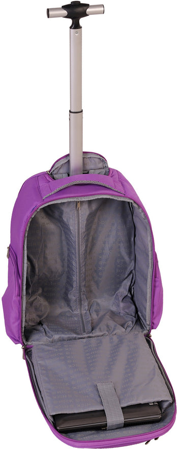 - Ed Heck backpack flaunts his unique pop art and features telescoping handle, skate wheels and concealed shoulder strap.