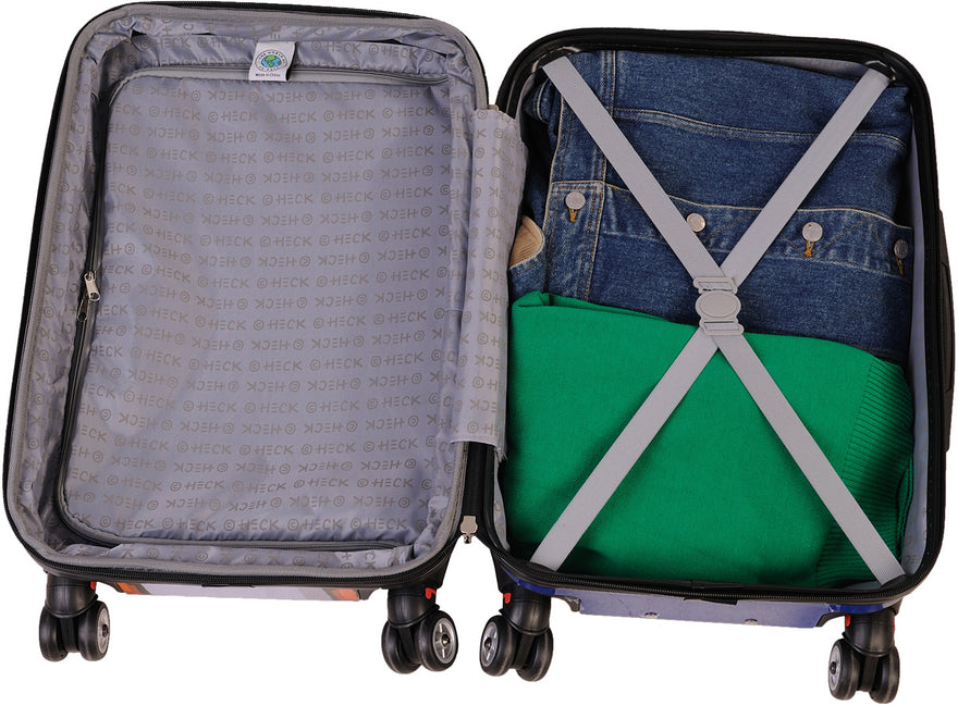 - Ed Heck hardside luggage flaunts his unique pop art and features 8 spinner wheelsEd Heck exclusive art