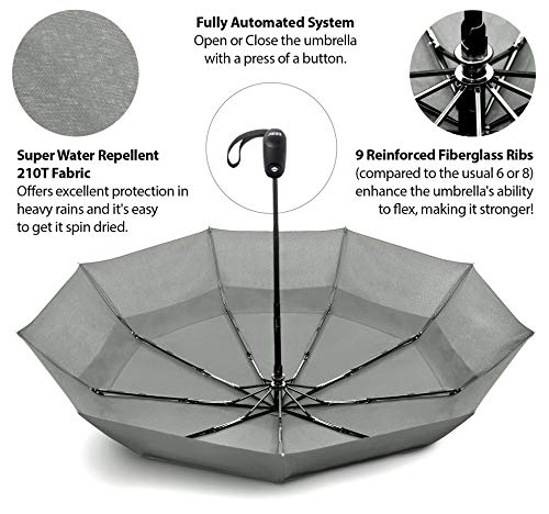 - WE STRONGLY BELIEVE that an umbrella should be easy to use, that is why our TRAVEL UMBRELLAS have a fully automated system, perfect for one handed operation. Simply OPEN or CLOSE the rain umbrella with a press of a button within one second. This feature gives you quick rain and sun protection, making sure you have a wonderful time outdoors, no matter the weather.