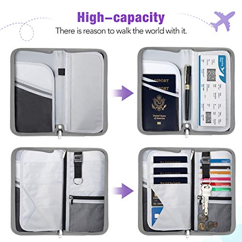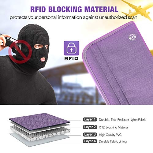 - RFID BLOCKING RFID PASSPORT HOLDER: Our passport holder family is made of durable, tear-resistant cationic fabric to prevent scratches. More important, passport travel organizer with inside RFID blocking shield material helps prevent personal account information disclosure.