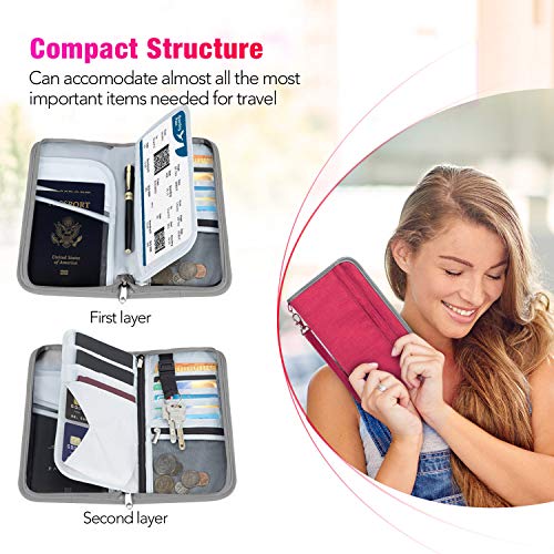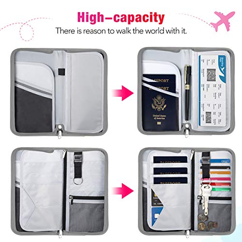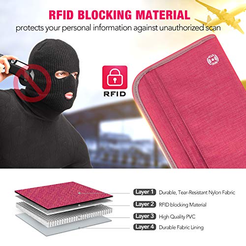 - RFID BLOCKING RFID PASSPORT HOLDER: Our passport holder family is made of durable, tear-resistant cationic fabric to prevent scratches. More important, passport travel organizer with inside RFID blocking shield material helps prevent personal account information disclosure.