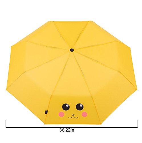 Details: Pokemon Pikachu Yellow Manual Tri-fold Umbrella. UV Protection - Suitable for both rainy or sunny day. Strong Windproof - durable metal wind resistant frame. Dimension: (Unfolded Diameter) 36.22 in. Finex is a registered Trademark. Sold exclusively by Finex Authorized Distributor.
