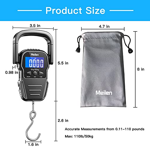 Details: Fish Scales History Fish scales were first invented in the late 1800s to early 1900s in the form we know them today. They were rudimentary at best but got the job done. Fish Scale Types When deciding on a set of the best fishing scales, there are a few things to consider. Accuracy is among the most important. Besides accuracy, durability is also a consideration. Unlike their predecessors that were made of metal that rusted, today’s fishing scales are mostly made of high impact plastics. Also, these new scales offer digital technology that gives exact weights down to the ounce. They also accommodate smaller fish that were too small to be weighed by the older scales. Meilen Fishing Scale With small body size,you can put the electronic scale in your pocket or backpack,it is not only a good helper when you go out for fishing,but also is an essential weight scale when you go out for a trip.In daily life,you can feel at ease with the scale. Stainless Steel Hook 360 ° rotating hook made of sturdy stainless steel. Weigh your catch when fishing or luggage while travelling, capacity up to 50kg. Durable ABS Rubber-Coated Handle The handle also can rotate backward or forward, making it easier for you to keep the scale vertical during weighing. Built-In Measuring Tape Once you know your item’s weight, conveniently find its size measurements as well. An included tape measure is stored inside the scale. 3 Scale Units The digital scale with ruler weighs up to 110LB/50KG capacity that reads in:LB. (pounds), OZ. (ounces),KG (kilograms) Waterproof bag Easy to carry, waterproof and dustproof