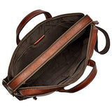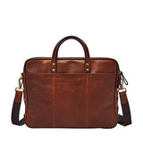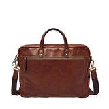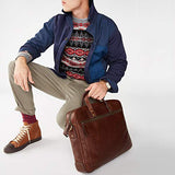 Fossil Men's Haskel Leather Double Zip Briefcase Messenger Laptop Bag, Cognac