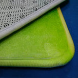 -Flannel+rubber material which is good for water absorption, dust collection, non- slip, dries fast, soft to touch, stand on it and feel, what a wonderful feeling.