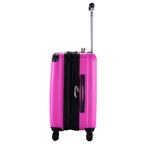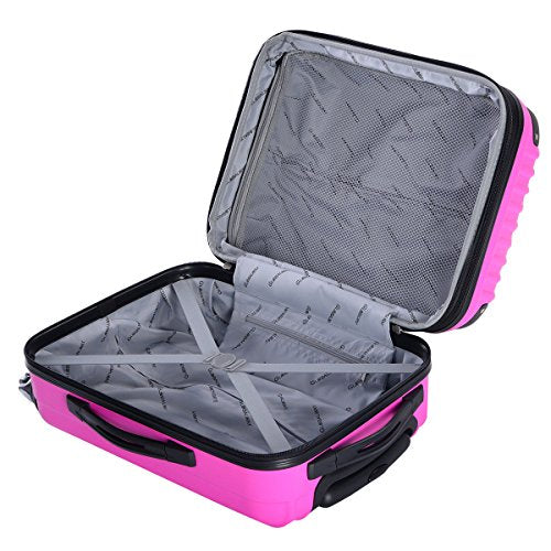 Details: This modern 20" trolley suitcase which is constructed from lightweight ABS material and features an embossed scratch-resistance shell, a heavy duty handle and 4-wheel spinner for effortless moving. Inside the suitcase, there is elastic tie straps to minimize shifting your contents and a zipper divider to create two separate interior compartments.