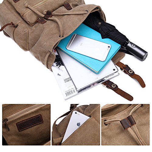 - ☆MULTI-PURPOSE: The vintage canvas backpack can be used as a hiking backpack, school rucksack, causal travel daypack, high school or college bag, shopping daypack, work or office rucksack etc.