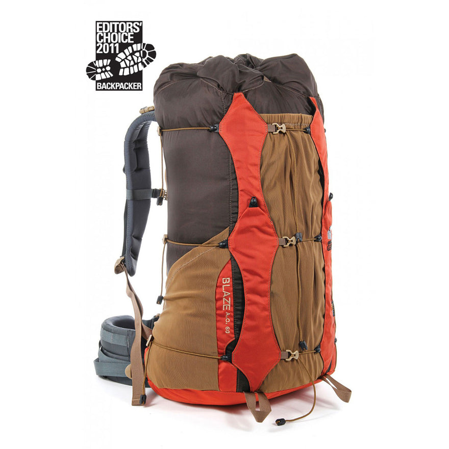 Like its predecessors, The Blaze AC 60 is Spartan in its simplicity and features our engineered Air Current suspension. The Air Current suspension consists of a 3-dimensionally molded alloyed frame, our quickest torso length adjustment system, padded shoulder straps, and a swappable hip belt for a custom fit. The AC frame has molded air channels, works in conjunction with a molded foam pad and durable stretch mesh to aid in venting heat and moisture away from the back; allowing for natural evaporative cooling. The pack body is a simple, lidless top loader with a tall spindrift opening that can be cinched and rolled down tight for weather resistance and also expanded when extra space is needed. The arched Line-Loc compression system allows the load to be cinched tight in every direction (side, front, and top) as well as allowing additional gear to be lashed to the pack. The Line-Loc cord can easily be replaced if it wears out from extended use. Durable and versatile stretch mesh pockets on the bottom of the pack sides work well for water bottles, while the tall front center pocket is great for damp tarps or ultralight tents.