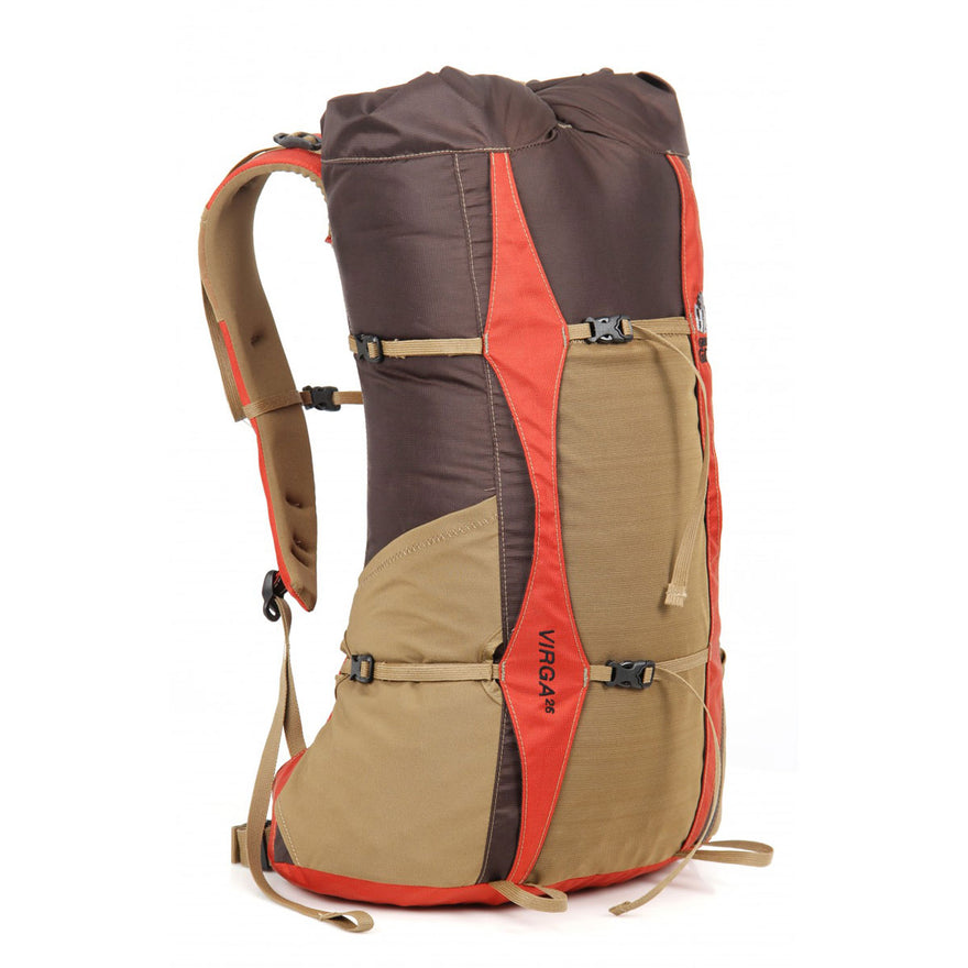 This perennial frameless favorite of ultralight backpackers gets a serious update and a reduction in weight! As in redesigned shoulder straps, a true ldquo;roll toprdquo; closure to keep out the elements, a mesh pocket in front and a padded hip belt. There are also some weight saving tweaks―10mm rather than 1rdquo; webbing that keep the weight below the original version even with the added features! The end result―a more comfortable Virga that still defines ultralight and weighs 2 ounces less than its predecessor.