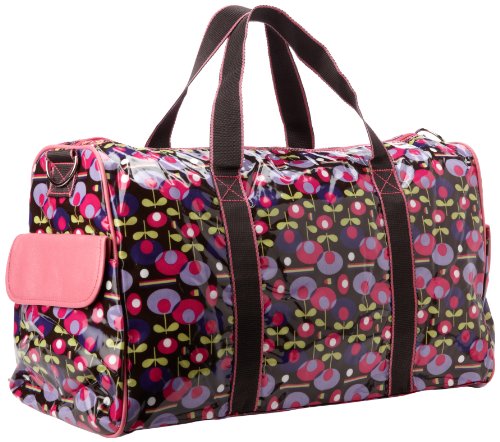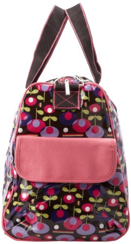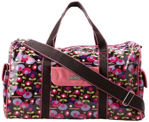 Details: HDK819-Lollipop Color: Lollipop Features: -Zippered top opens to roomy interior. -Six interior storage pockets with three outside storage pockets. -Leather flap covers and hidden magnetic closures. -Hand straps and an adjustable, removable shoulder strap. Exterior Color: -Pink. Dimensions: Overall Height - Top to Bottom: -12 Inches. Overall Width - Side to Side: -20 Inches. Overall Depth - Front to Back: -9 Inches. Overall Product Weight: -4 Pounds.