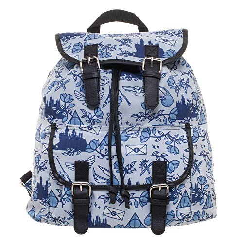 Details: Even Muggles need a magical way to carry your items from one place to another, and now you can with the Harry Potter Knapsack! The Harry Potter Backpack is a cotton Harry Potter accessory designed with images of the Deathly Hallows, Hedwig, golden snitches, and other popular Harry Potter symbols! The Harry Potter Bag is equipped with a snap closure and able to fit all of your necessities and more with plenty of storage in both the large and front compartments. This is the perfect Harry Potter gift for fans!